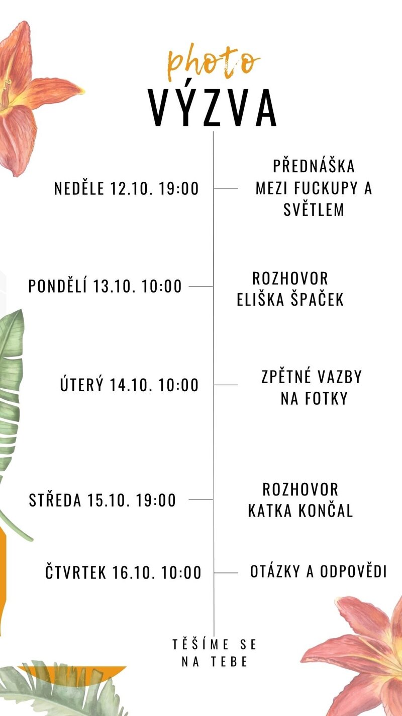 Poslední den výzvy je prostor pro otázky a odpovědi k celé tvé cestě během těchto 5 dnů – technika, fotky, každodenní život i to, jak můžeš pokračovat dál se mnou.